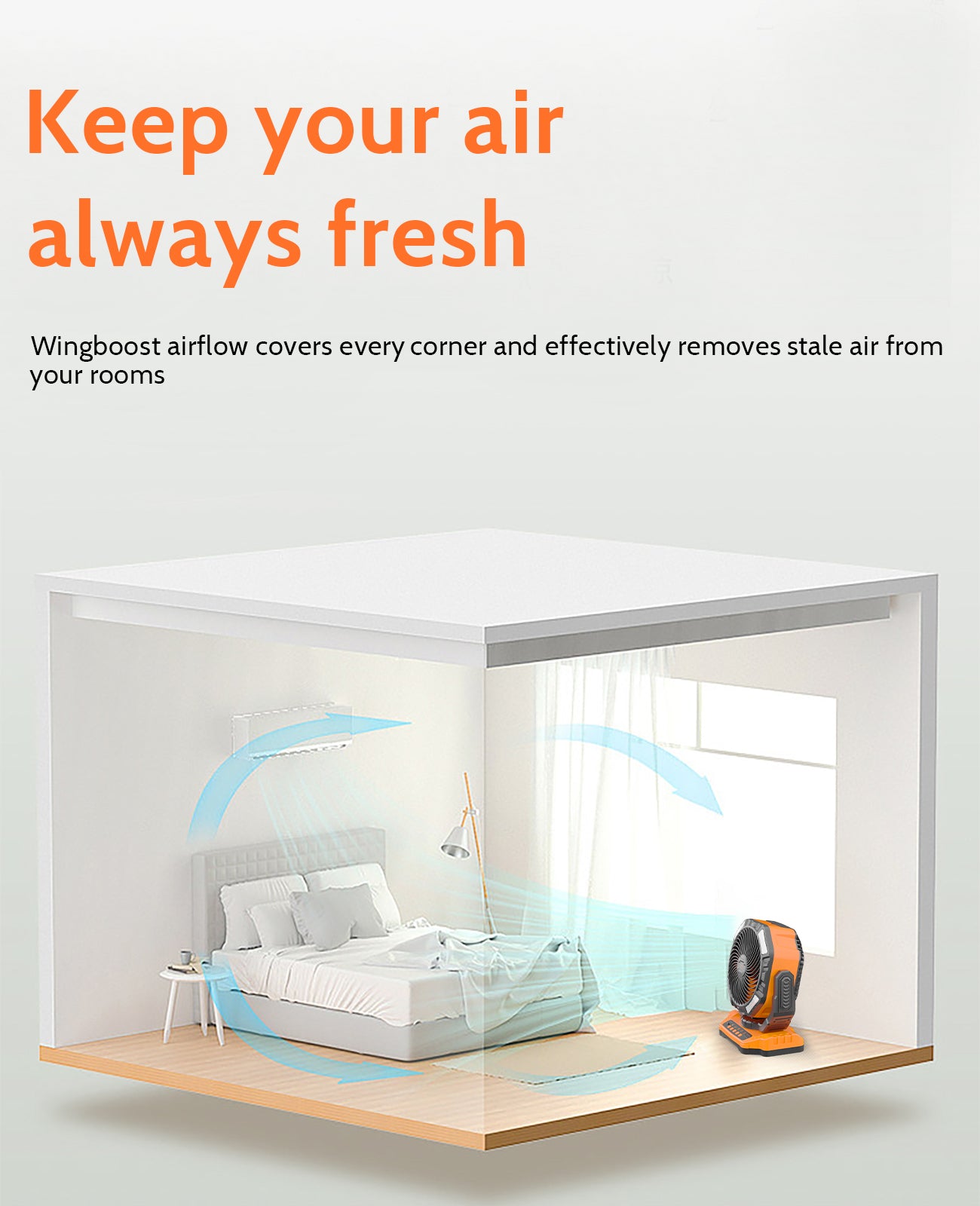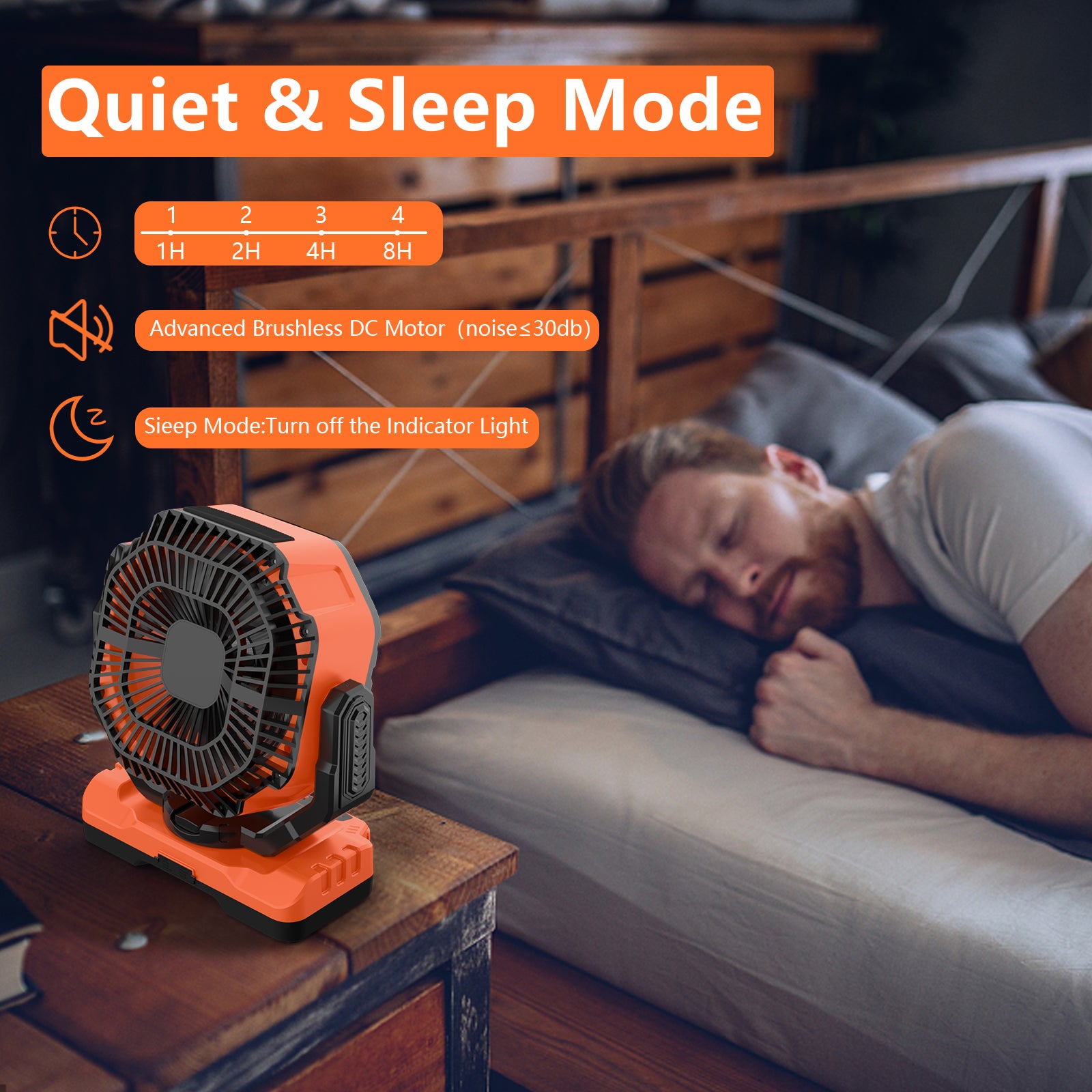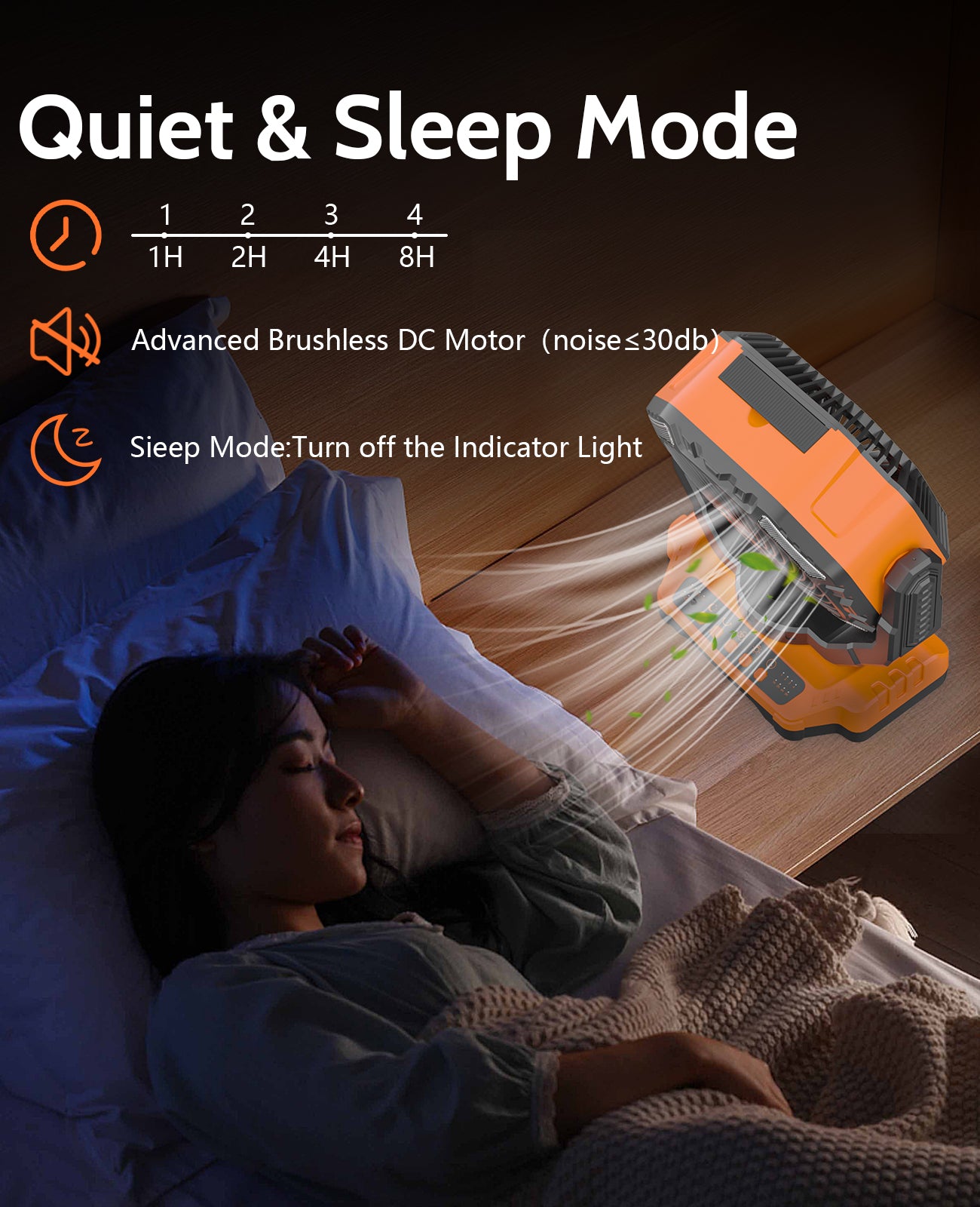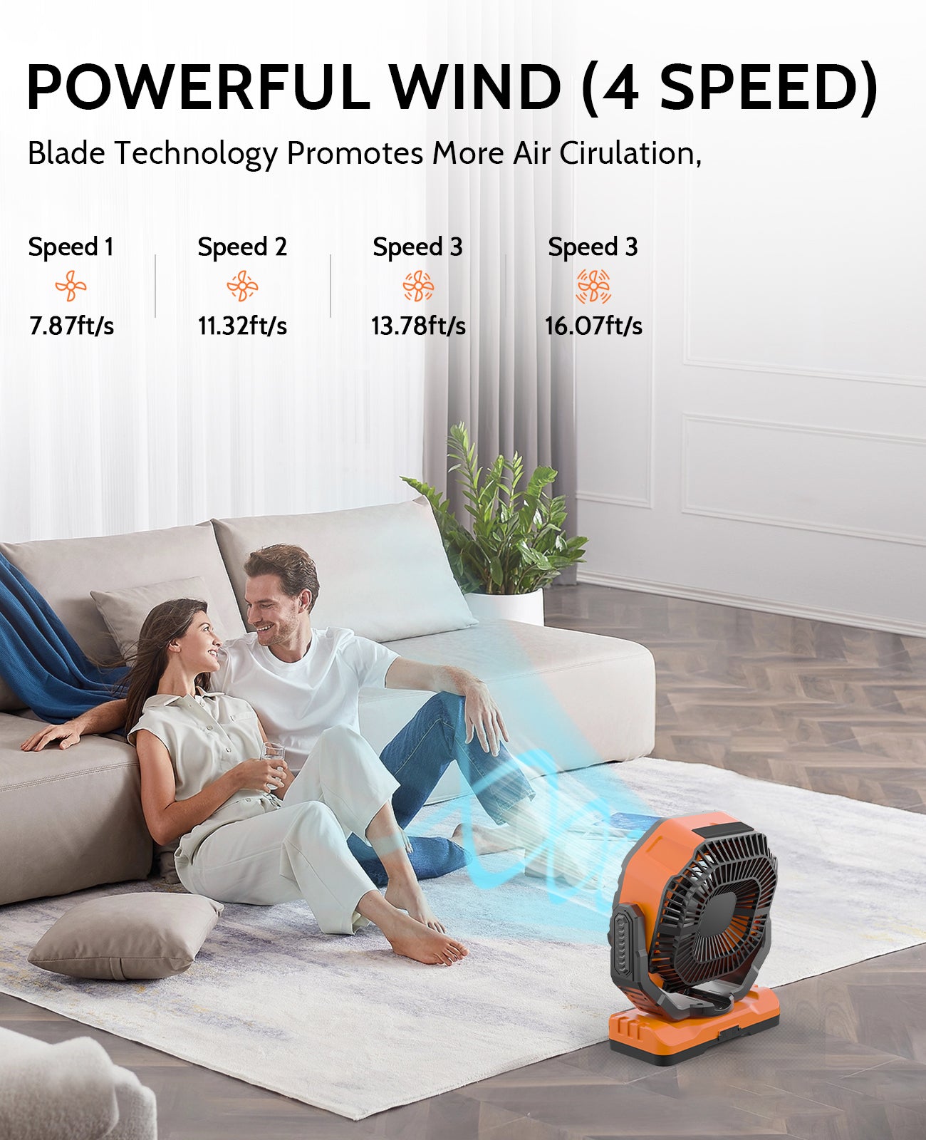 - 【Powerful Wind & Quiet】Powerful camping fan utilizes an advanced Brushless Motor to larger Air Conduction Valume, which is incredibly quiet and energy-efficient. Blade technology promotes more air cirulation, this air is then directed to the desired area, providing maximum cooling, outdoor fan has 4 speed, the wind speed can reach up to 16.07ft/s.